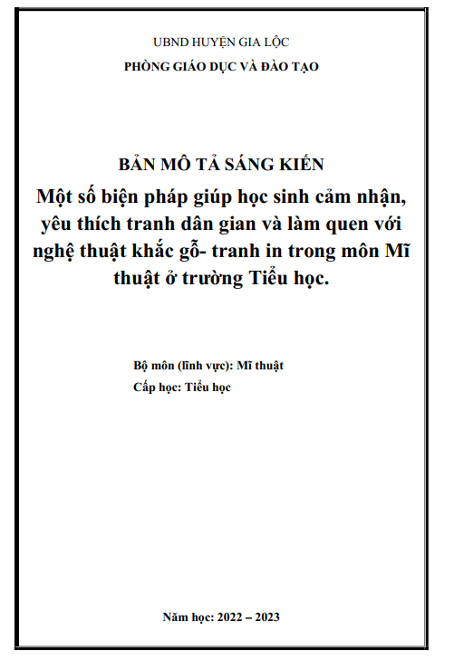 Một số biện pháp giúp học sinh cảm nhận, yêu thích tranh dân gian và làm quen với nghệ thuật khắc gỗ - tranh in trong môn Mĩ thuật ở trường Tiểu học.