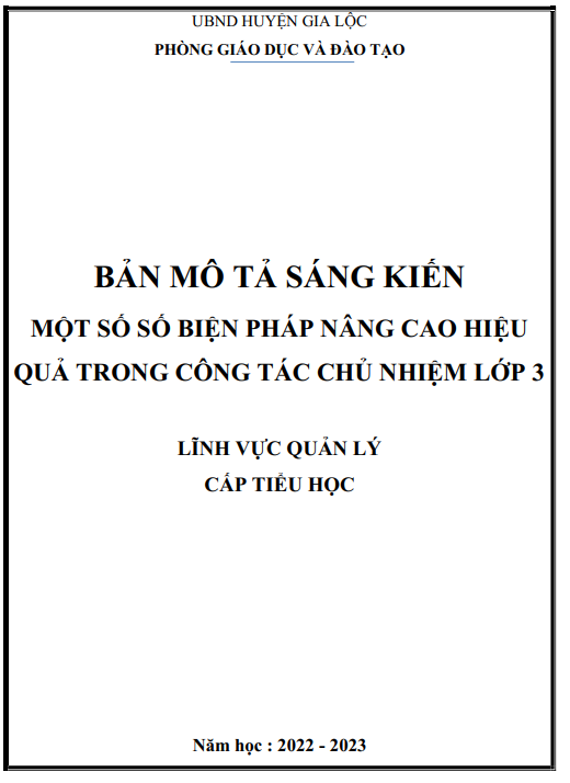 Một số số biện pháp nâng cao hiệu quả trong công tác chủ nhiệm lớp 3