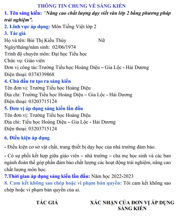 Nâng cao chất lượng dạy viết văn lớp 2 bằng phương pháp trải nghiệm